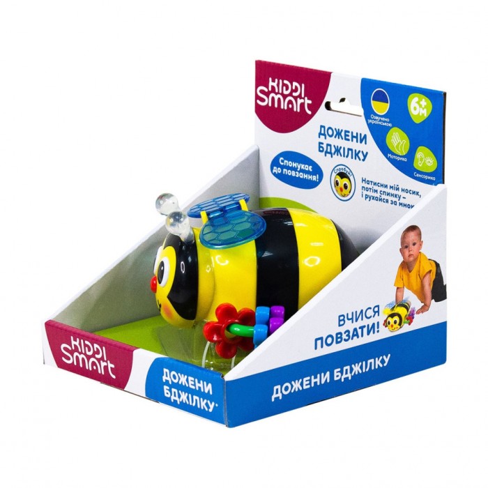 Пусть малыш проводит время с пользой и весельем с развивающей игрушкой KIDDI SMART - Догони ПЧЕЛКУ! Она поощряет малышей ползать и пытаться ее догнать, ведь пчелка мигает сияющими огоньками, забавно двигается, поет оживленные песенки, еще и имеет красочный дизайн!