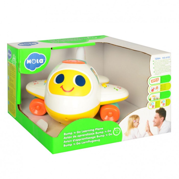 Детская игрушка самолет 6103, рекомендованная для самых маленьких деток старше 12-ти месяцев, развивает воображение, внимательность, цветовое и слуховое восприятие, мотивирует кроху к получению новых знаний. Компактный самолетик выполнен с очаровательной, дружелюбной мордашкой, которая вызывает умиление и самые радостные улыбки. Игрушка отличается прочным корпусом, изготовленным из безвредного и гипоаллергенного пластика, который не вызовет у Вашего непоседы неприятных раздражений. Самолетик размером 21 х 19 х 12 см функционирует при помощи стандартных батареек типа АА, которые необходимо покупать дополнительно. Приятное, мелодичное звучание, обилие полезных режимов для обучающих игр, оригинальный, современный дизайн – идеально подобранный функционал и качественное изготовление порадуют и детишек, и взрослых.