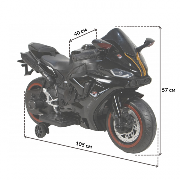 Усі електричні складові надійно заховані у корпусі. Завдяки музичним та світловим ефектам їзда на цьому мотоциклі буде захоплюючою та незабутньою.