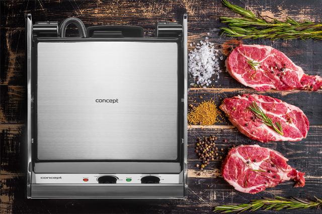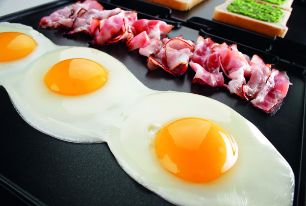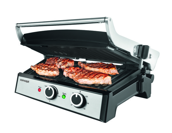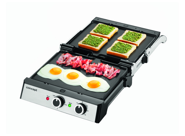 Наш контактный гриль обладает функцией BBQ. Вы можете жарить на двух открытых плитах одновременно. С одной стороны овощи, с другой – сочная свиная шейка. Вы приготовите блюда как для вегетарианцев, так и любителей мяса. С помощью гладких тарелок можно подать английский завтрак с ароматным, хрустящим беконом и яичницей, а также драники или оладьи, которые не будут прилипать к поверхности.