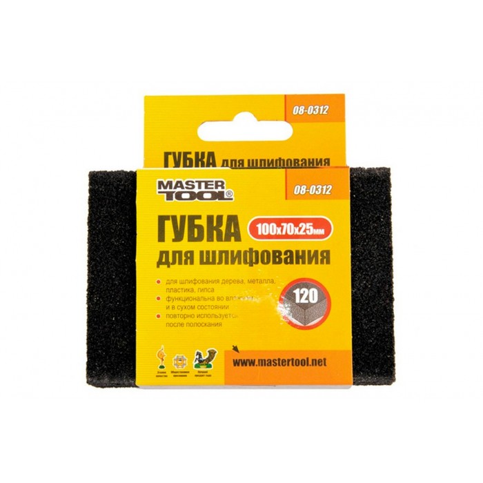 Губка шлифовальная Mastertool 100 х 70 х 25 мм P120 (08-0312)