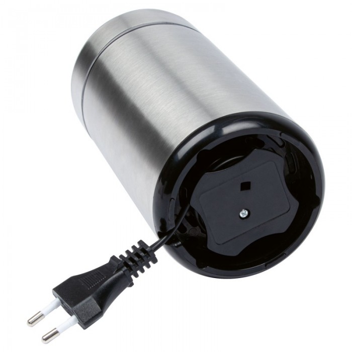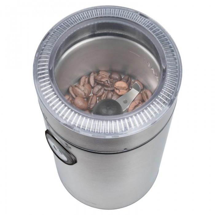 Функциональность и производительность - Двусторонний нож из нержавеющей стали и мощный двигатель мощностью 150 Вт легко измельчают кофейные зерна по вашему вкусу. Включите устройство, пока зерна не станут желаемой степени помола.