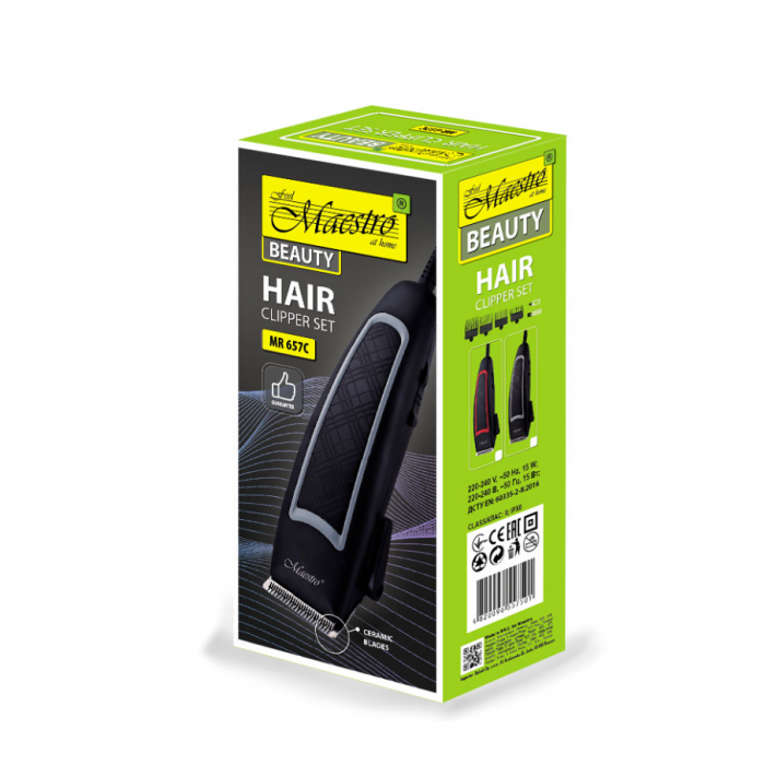 Машинка для стрижки Maestro MR-657C предназначена для использования профессионалами. Она имеет эргономично продуманный корпус, детали которого удобны в использовании. Режущие элементы остро уточнены и очень прочные. Данная машинка имеет надежные лезвия из керамик, крепкий пластиковый корпус, привлекательный внешний вид и удобство размещения в руке.