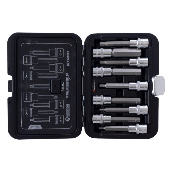 Набор бит HEX Intertool 1/2" x H4-H17 x 100 мм (9 шт.) Storm (ET-8406)